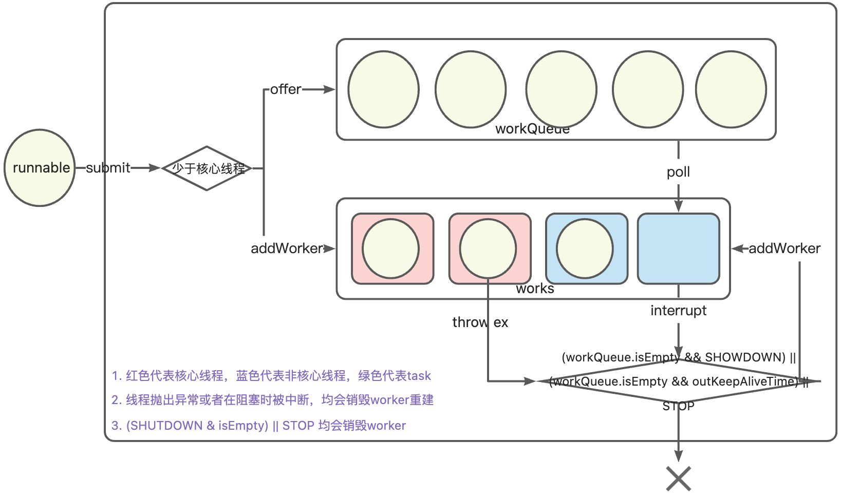 看完ThreadPoolExecutor的代码后,我特地抽时间画了一张图,希望可以加深自己的理解: