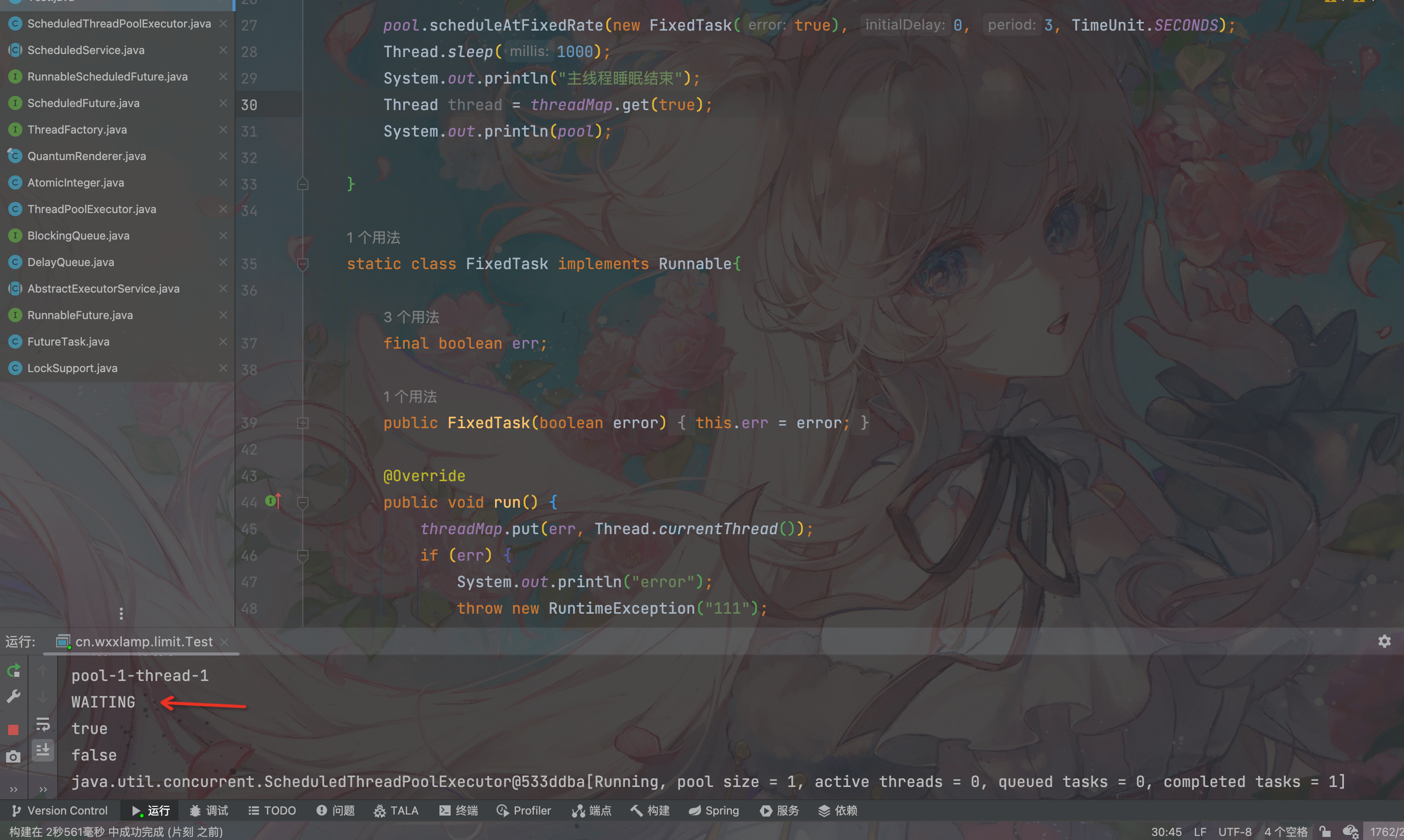 至于此时为啥线程池中的线程还处于WAITING状态,则是因为当前任务执行结束,Worker在调用workQueue#poll方法被阻塞了而已