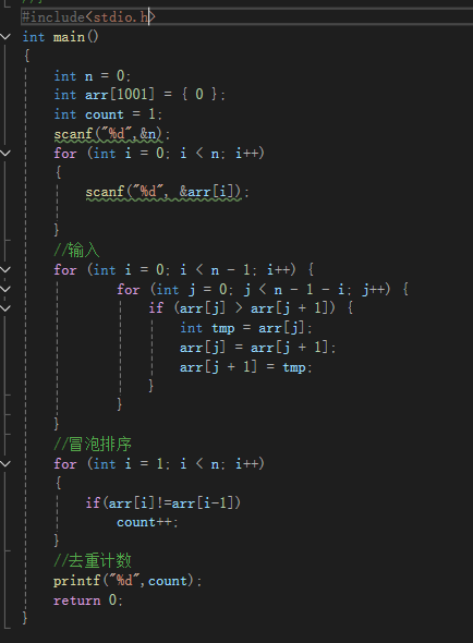 此题不可直接用双层for循环直接比较 当N=6,input:1 4 1 2 2 1 时