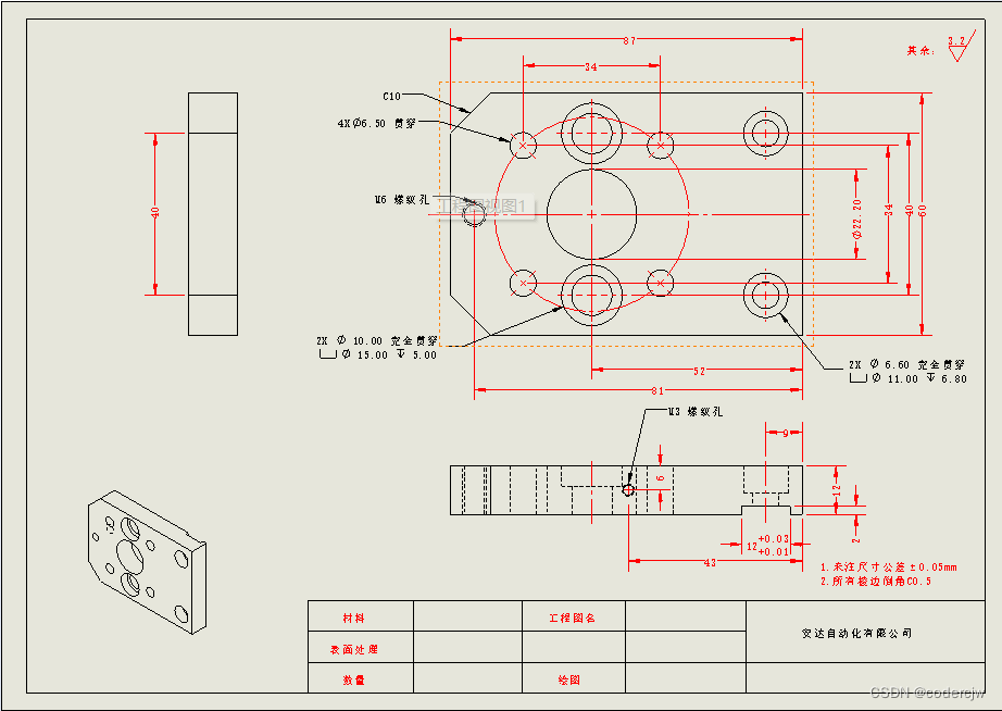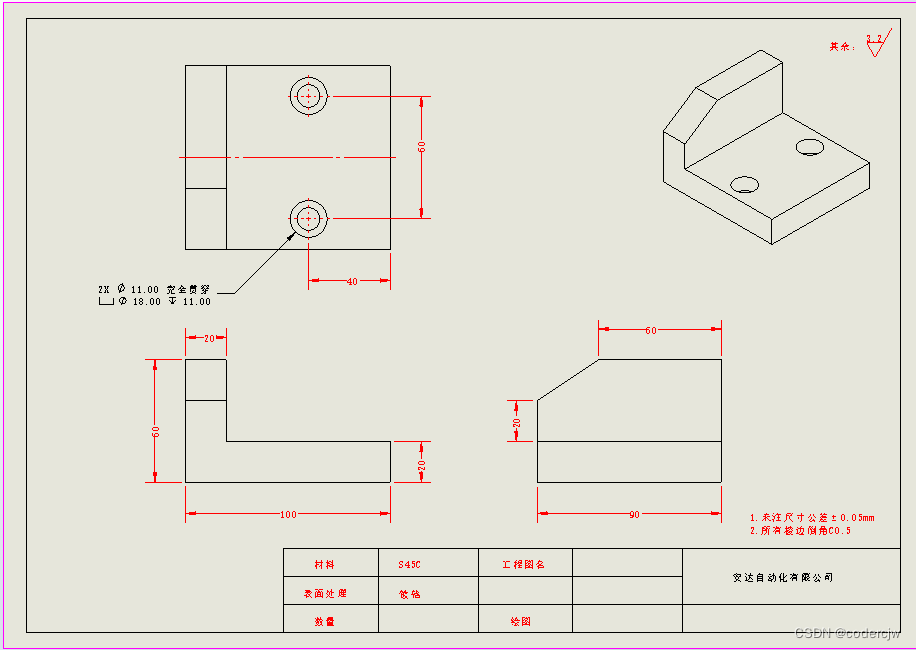 倒角C0.3表示:要进行0.5毫米的45度倒角