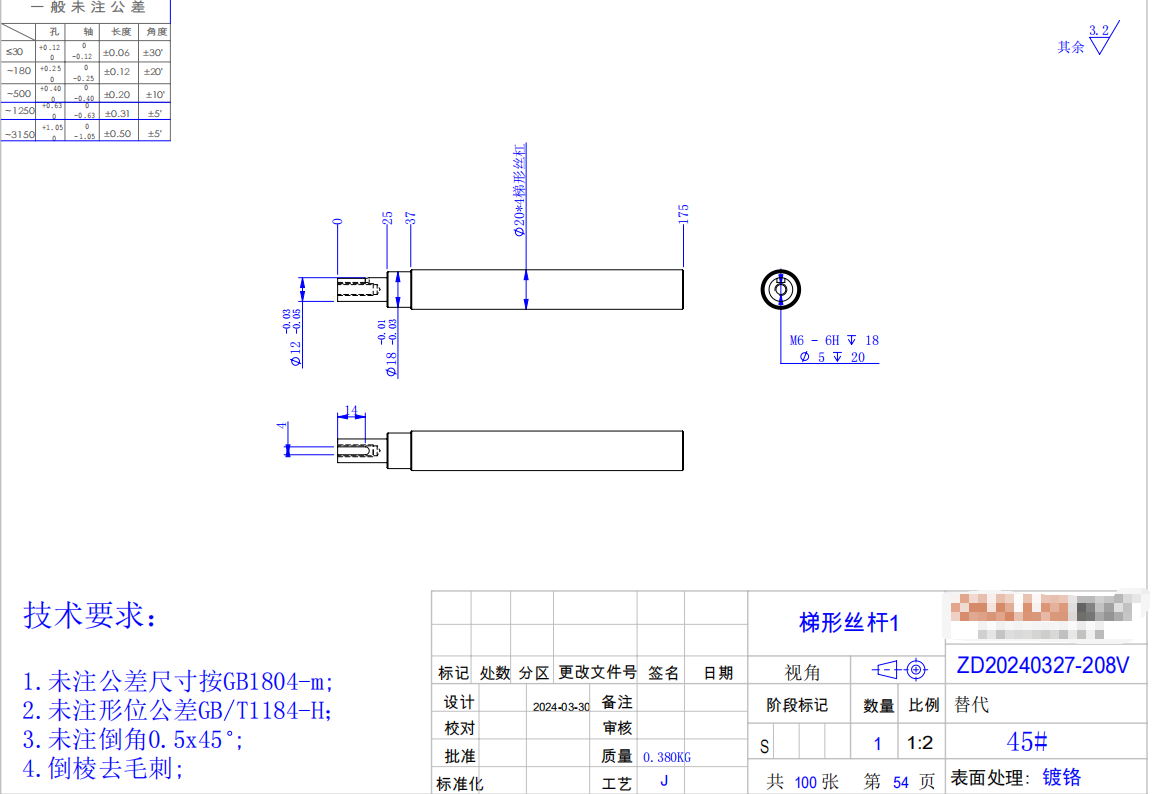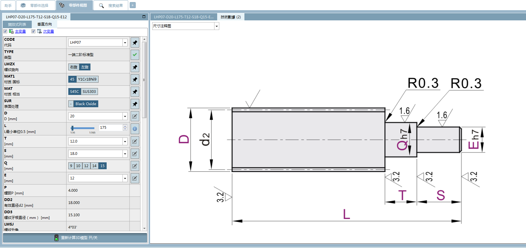 这是自己在怡合达选的梯形丝杆,想要键槽,自己画上去,想要Q为18,也可以自己加粗,然后重新出工程图就行,