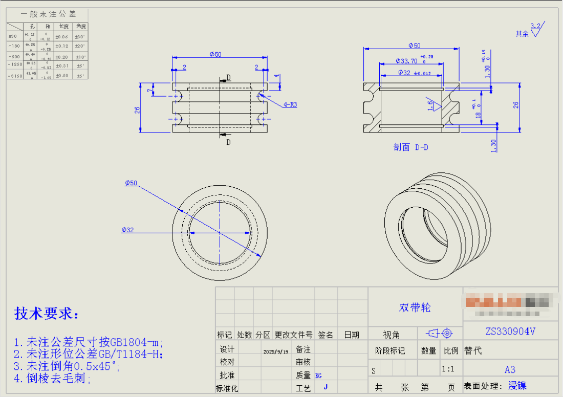 32。o型带轮,这玩意儿是自己画的,o型带要自己去淘宝买