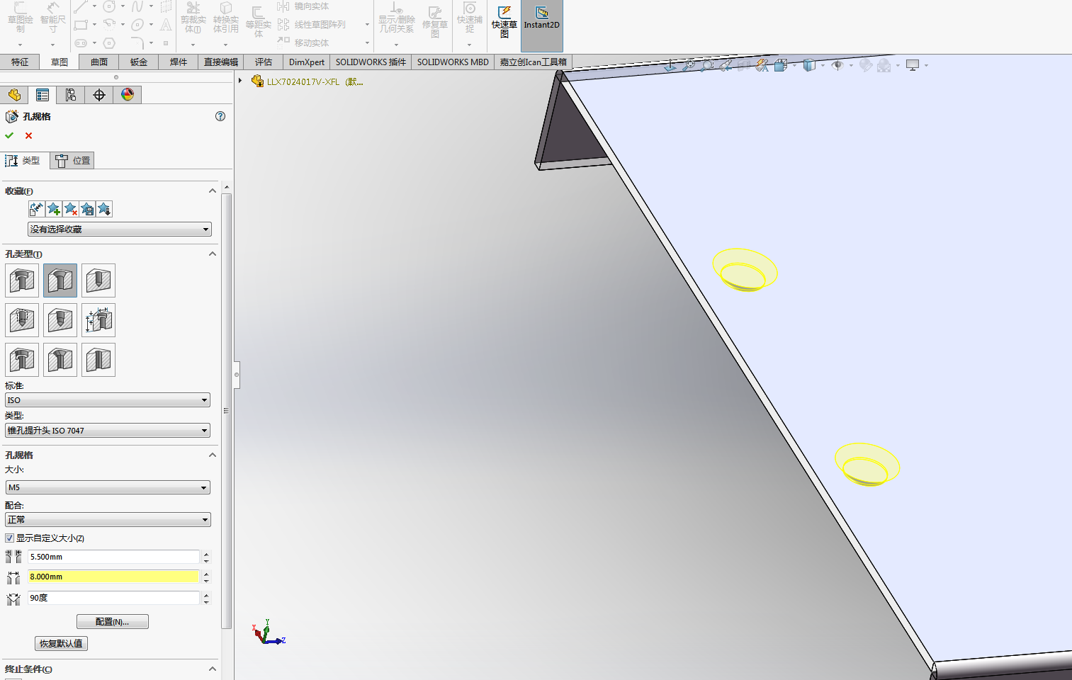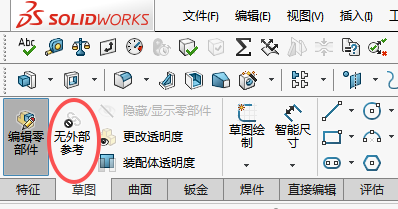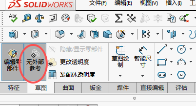 方法2:(方便修改,比较快):不点击无外部参考,但是零件需要和其他零件之间完全配合好,零件保持不动,然后再配合打孔,这时候就不需要输入那么多的尺寸就可以完全定义好孔,而且一旦零件位置发生变化,孔位也会跟随变化,
