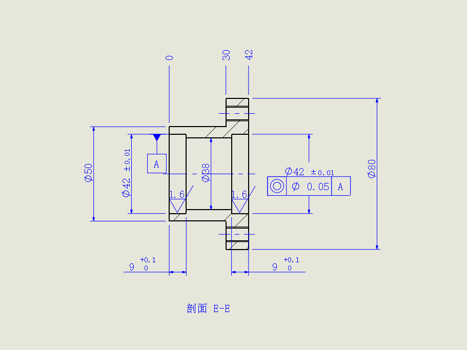 18.标准法兰座出图,注意公差,很重要,两个圆孔就必须要标注圆轴度,一般为0-3丝或者0-5丝。