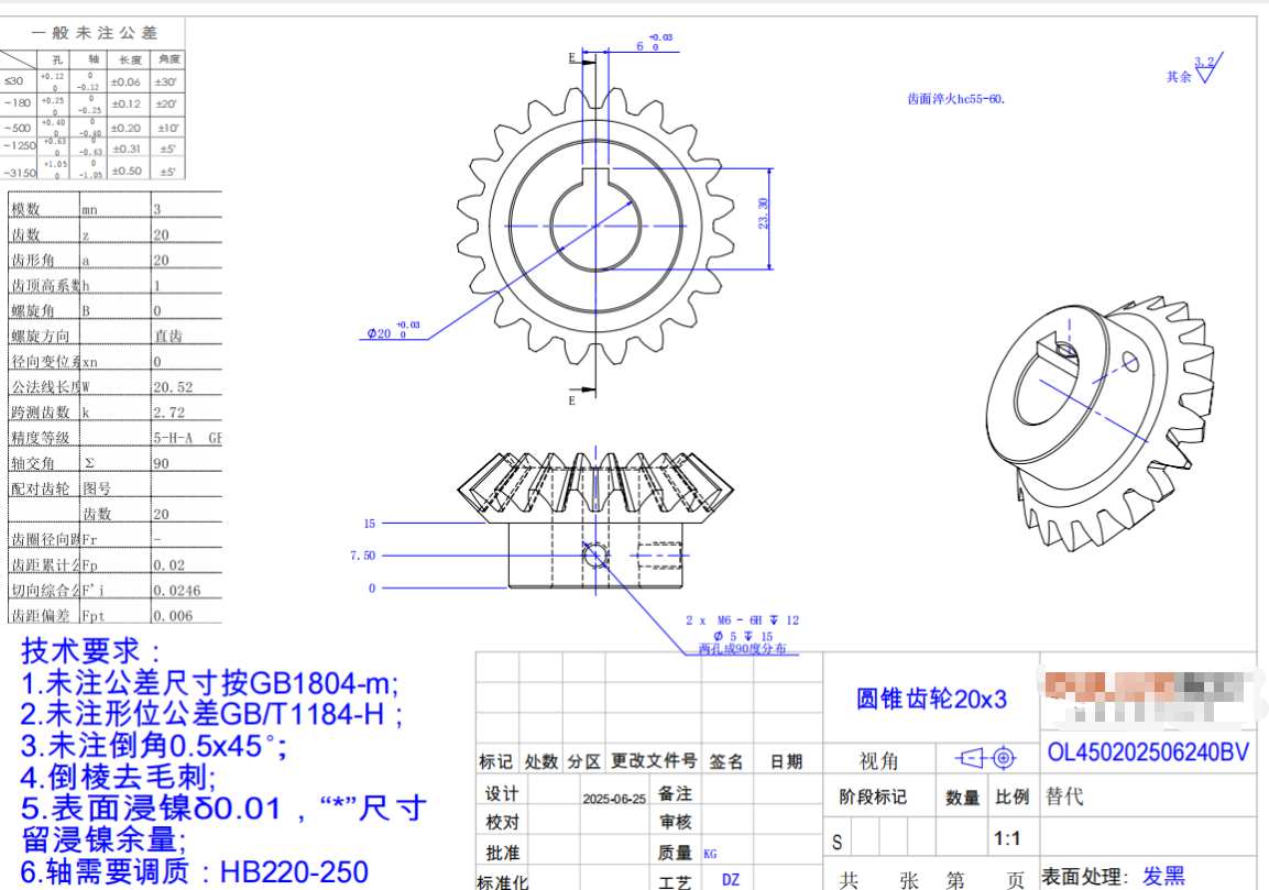 16.齿轮记得加上 :模数,齿数,齿形角,齿面淬火hc55-60.