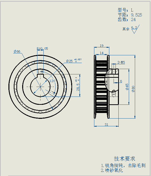 17.同步轮一般是AL6061,喷砂阳极,要知道型号,节距,齿数就可以了。