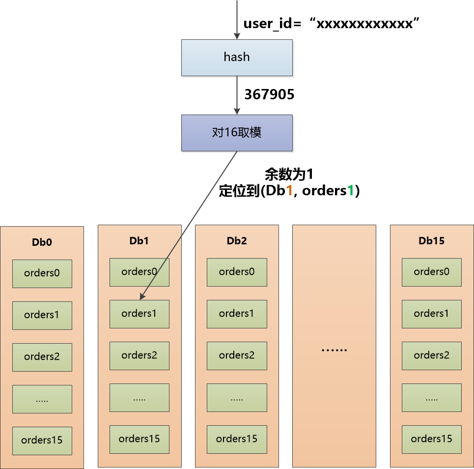 这样我们很容易从order_id解析出user_id。然后就可以根据user_id路由到具体的库表了。