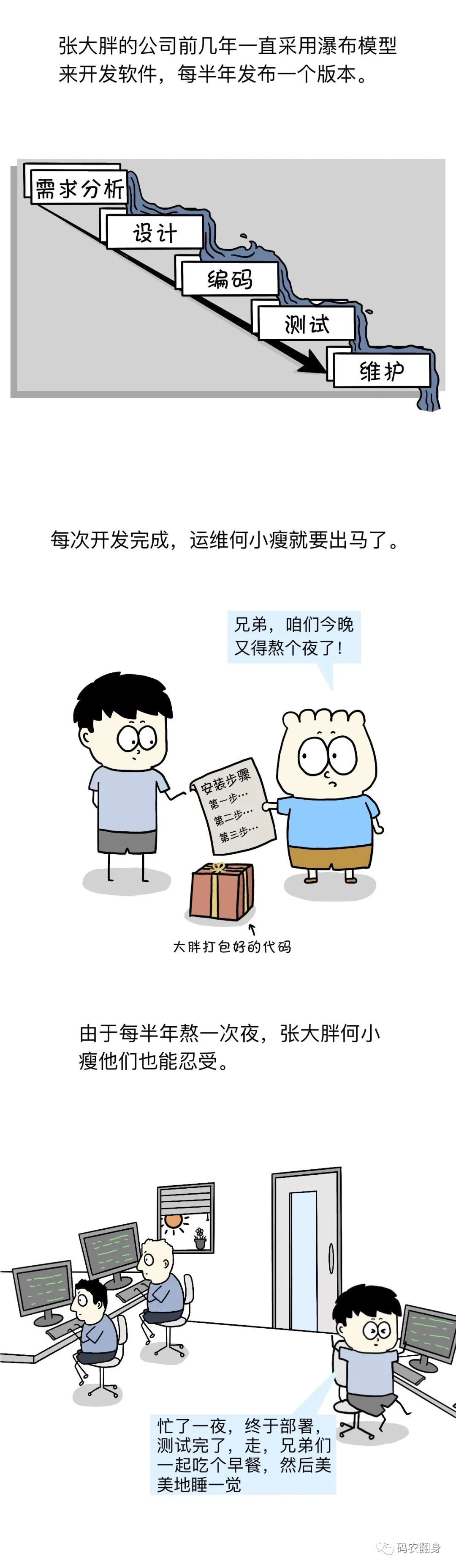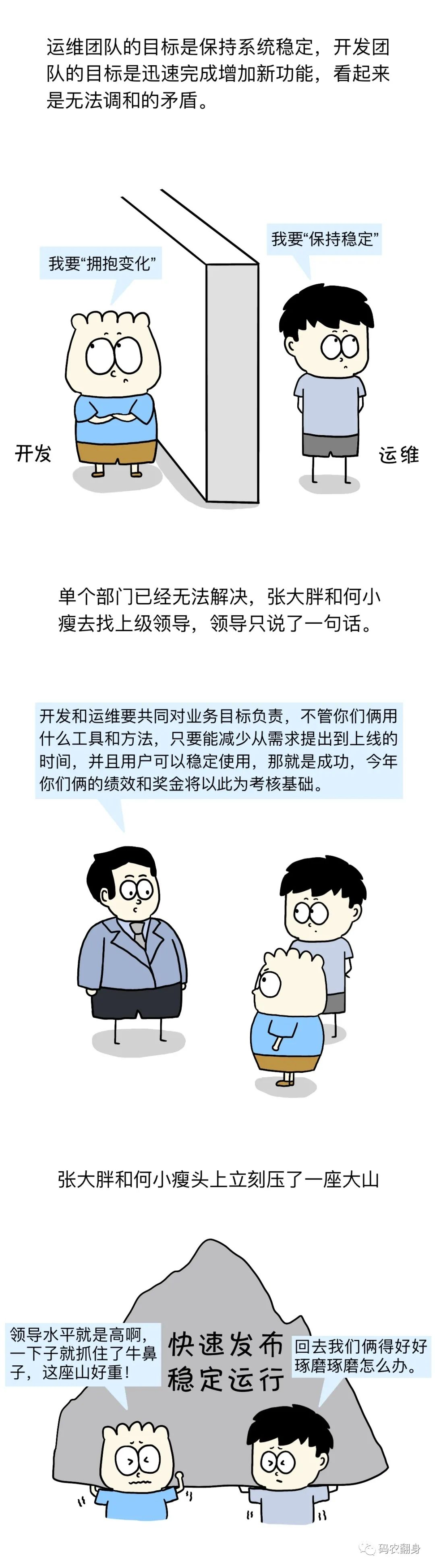 DevOps到底是什么?Wikipedia的定义是:DevOps是是一组实践的集合,这些实践能把软件开发(Dev)和IT运维(Ops)给结合起来,目标是缩短系统开发的生命周期,持续的发布高质量的软件。简单来说:就是快速开发,稳定运行。敏捷开发和DevOps有着密切的关联,可以说是相互补充,几个标准的DevOps实践例如“自动化Build和Test”,"持续集成",“持续发布”来源于敏捷社区,敏捷开发的理念最早起源于上世纪90年代,到2001年形成了正式的名称。敏捷最早是为了解决客户和开发人员之间的交流障碍,而DevOps解决的是开发和运维之间的“深沟”。DevOps不仅仅是工具链, 更需要公司文化的改变,需要转变运维,开发,测试之间在开发和部署中协作的方式,让这些部门之间紧密地协同是企业拥抱DevOps的关键挑战。
