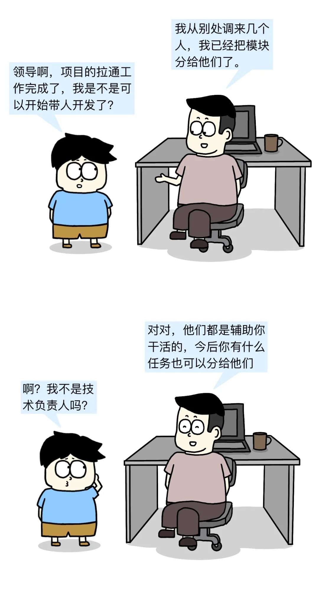 技术负责人张大胖想到升职加薪的美好场景,感觉被打了鸡血,开始干起拉通的”脏活累活“。