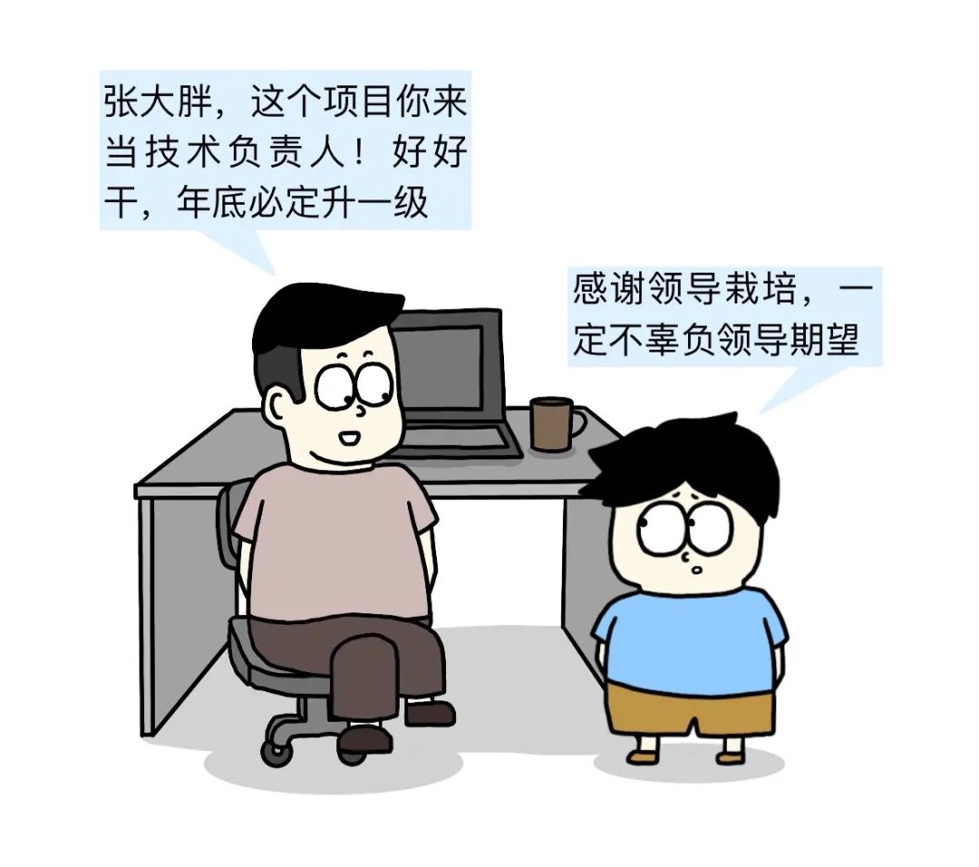 辛苦了一年的张大胖一无所获,别说技术负责人了,连绩效都因为经常和领导理论,打得很低,王经理则获得了一个卓越项目奖