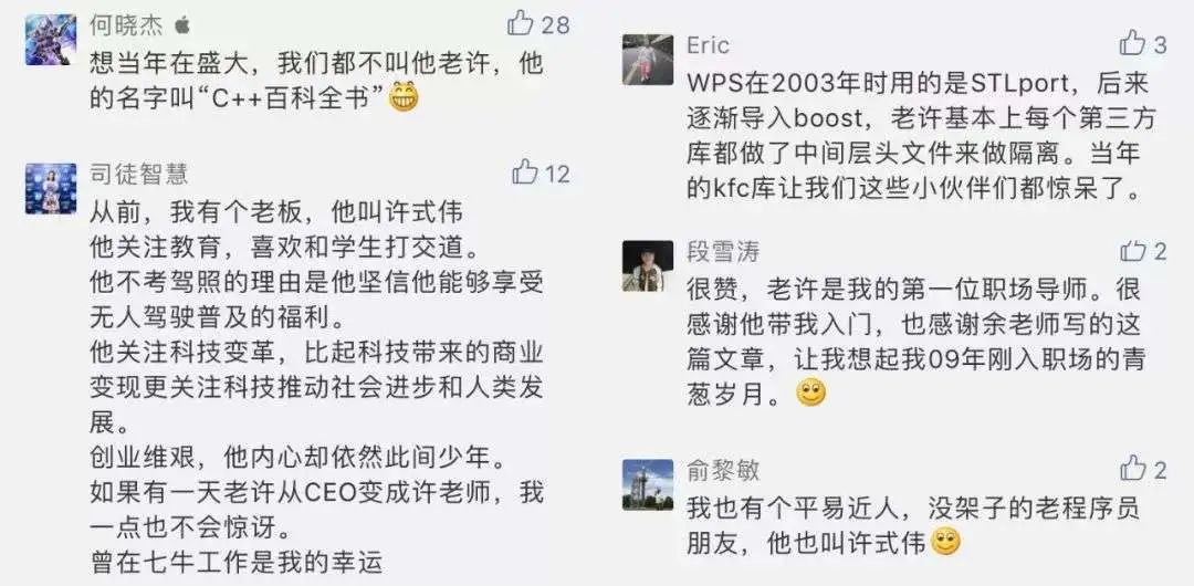 之前,老许在盛大的前同事余晟,还写了一篇关于他的文章,在评论区看到几条留言挺有意思,分享给你看看: