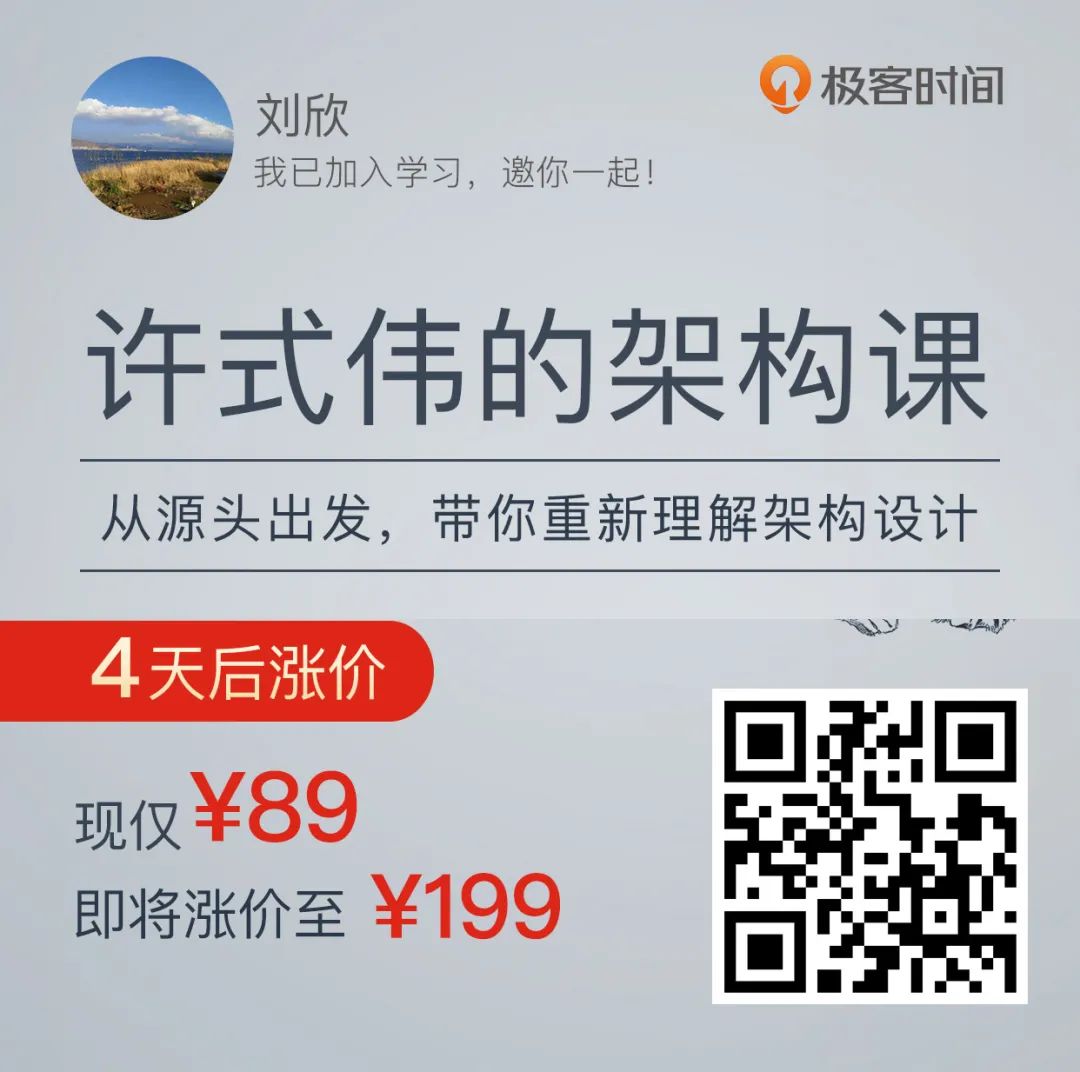 几十块钱,就能看到许式伟 20 年经验总结,获得与顶尖架构师更近一步的机会,几年后的你,会感谢自己今天的投资。