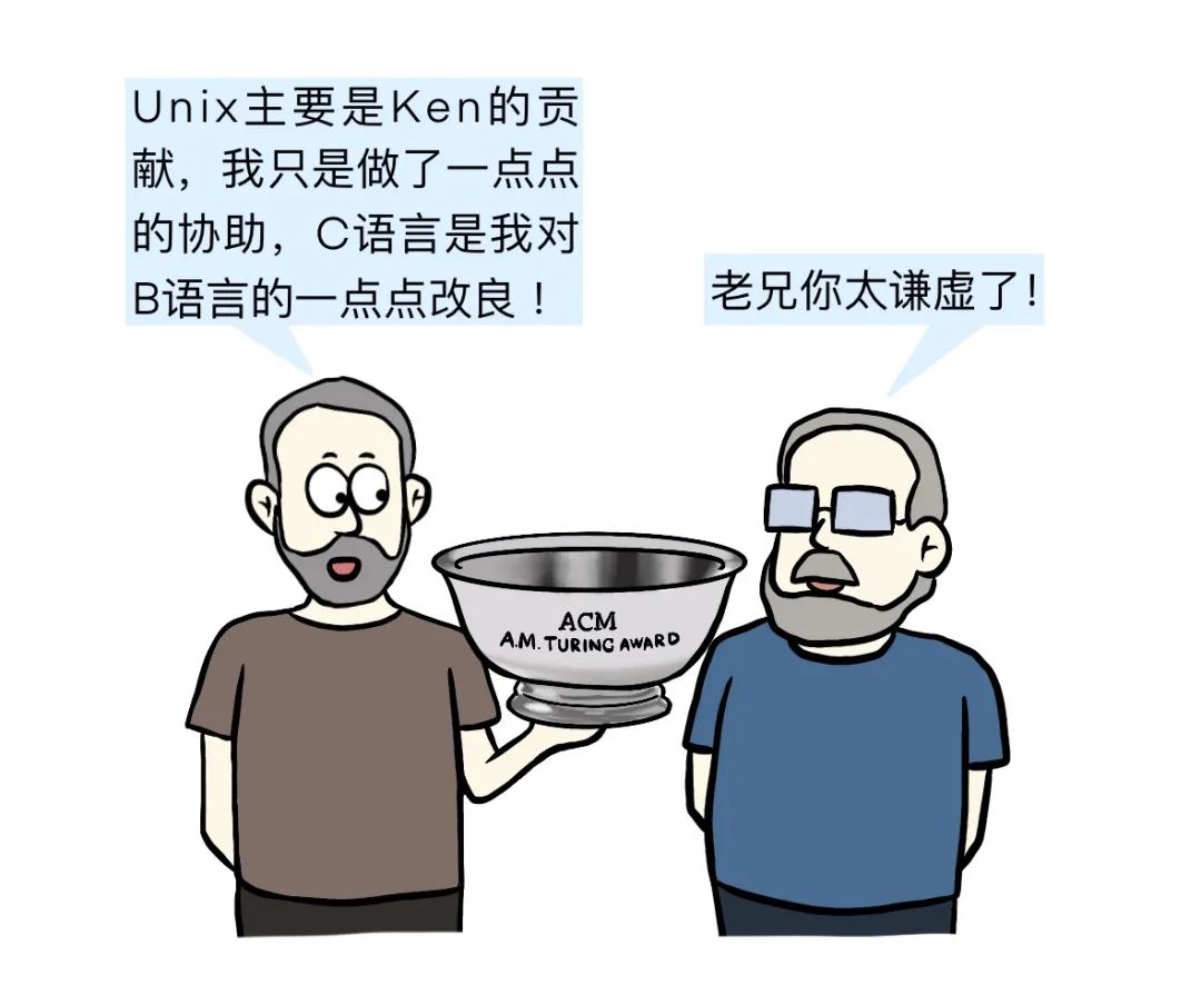 1983年, Dennis 由于对Unix和C语言的卓越贡献,和Ken 一起获得了图灵奖。