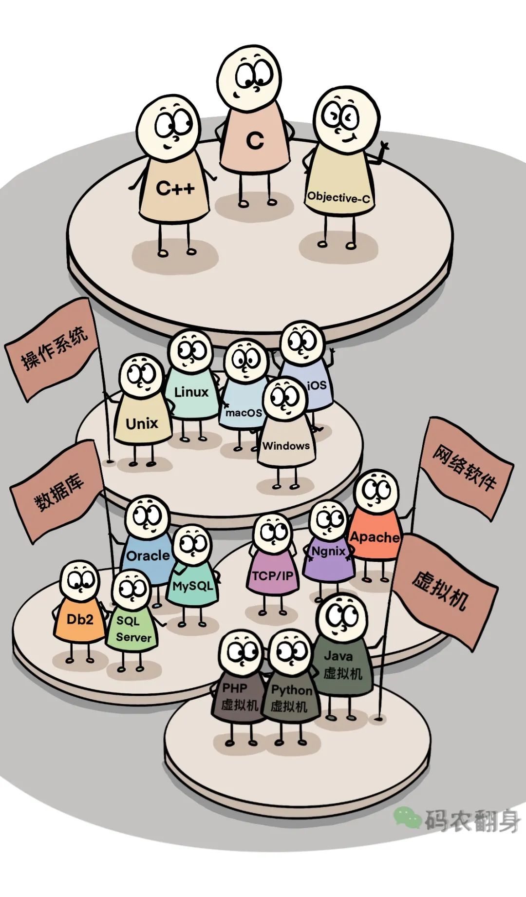 当年的各类计算机八仙过海,各显神通,不仅各个指令集标新立异,而且几乎所有方面都彼此不一,甚至连基本的字宽度和内存寻址方式都不一样