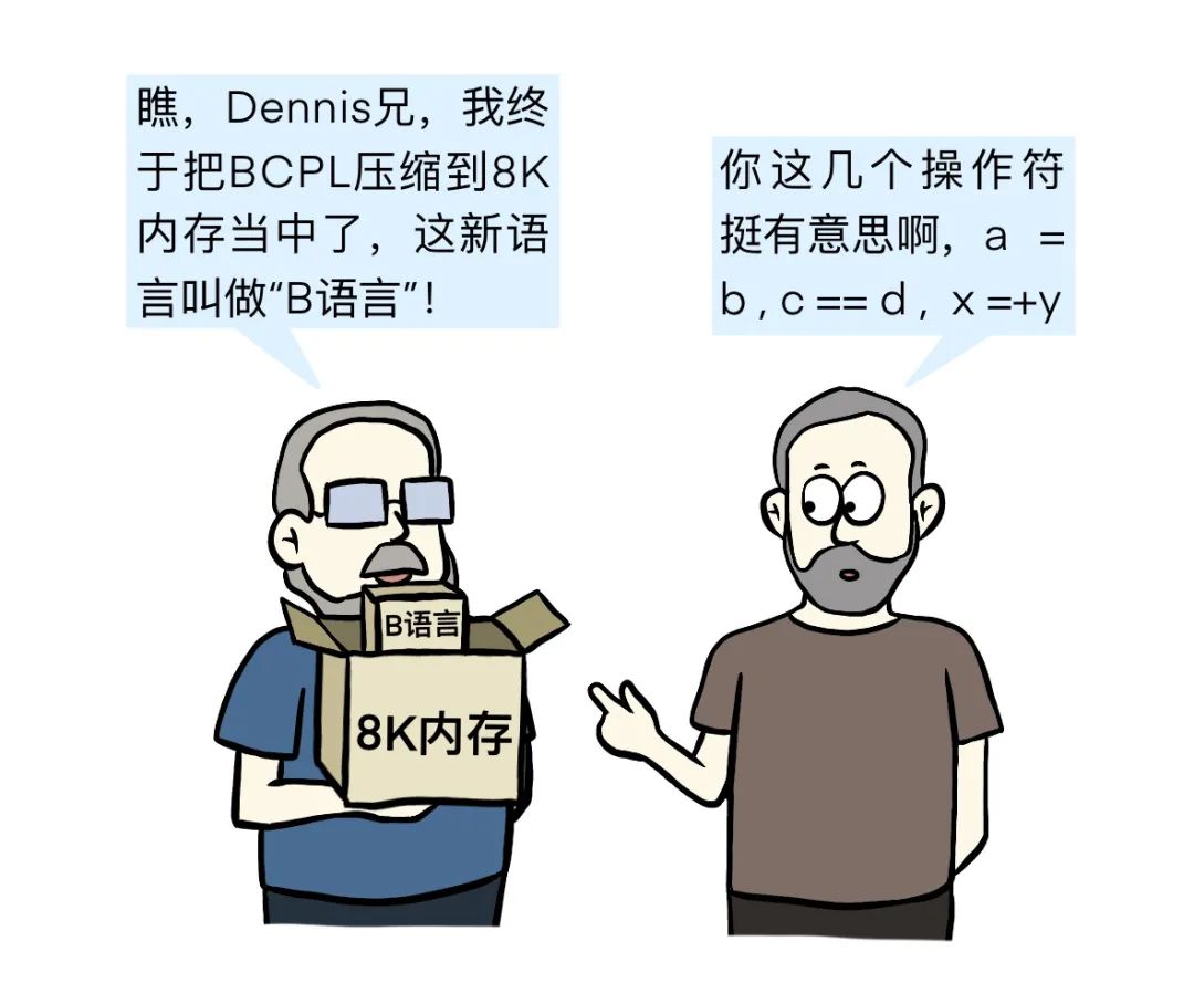 Ken接受了建议,不断打磨BCPL,生成了一个满足PDP-7条件限制的新语言。