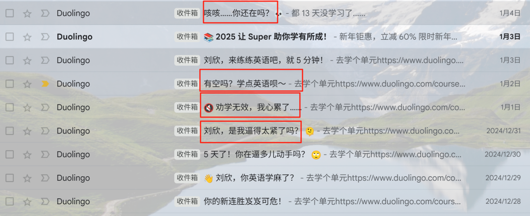 每次我看到Duolingo发的邮件,都会忍不住会心一笑,点开链接,再去学一会儿。