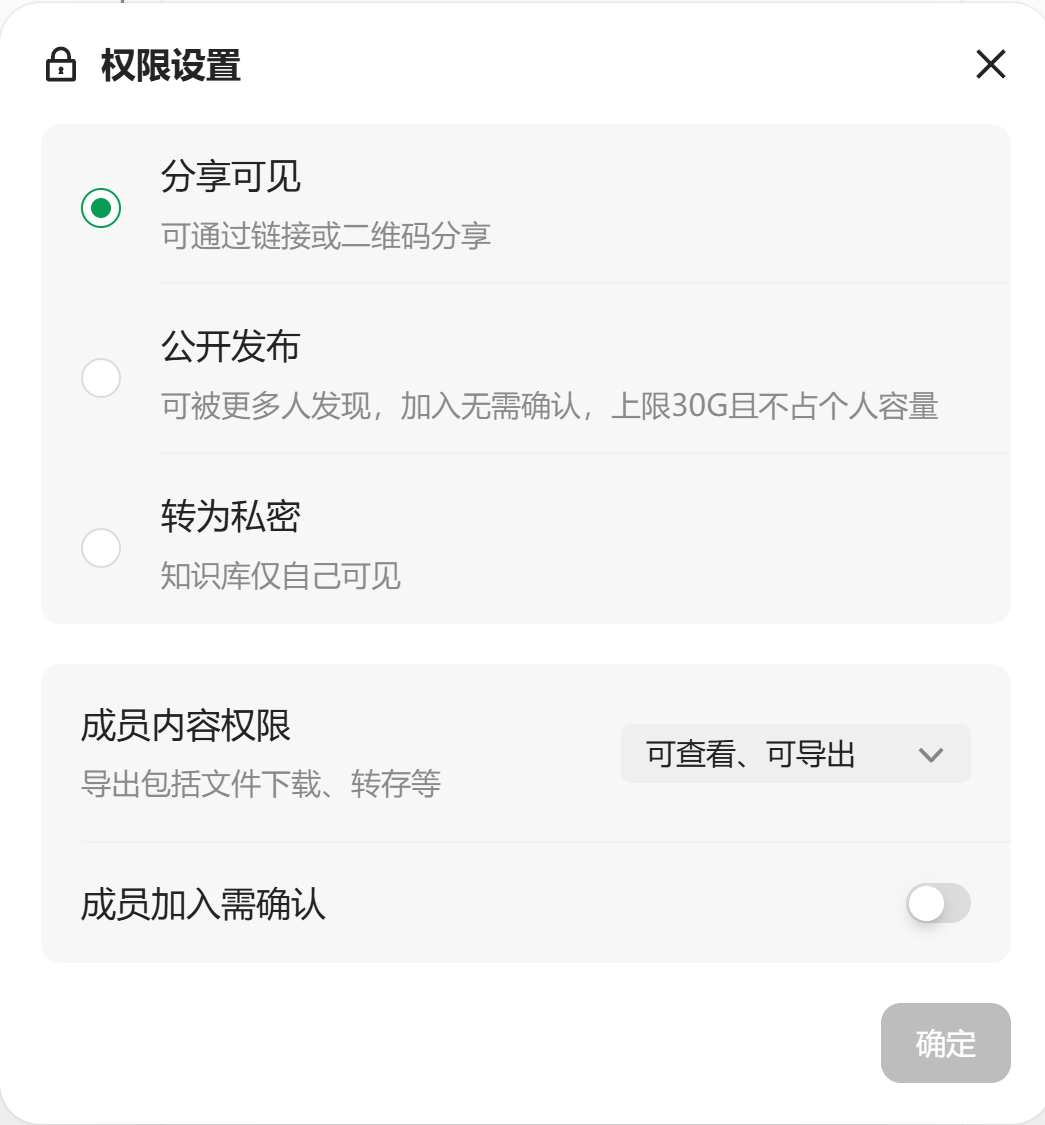 当然在分享的时候,我们可以进行权限的控制,保证知识库的数据安全性。