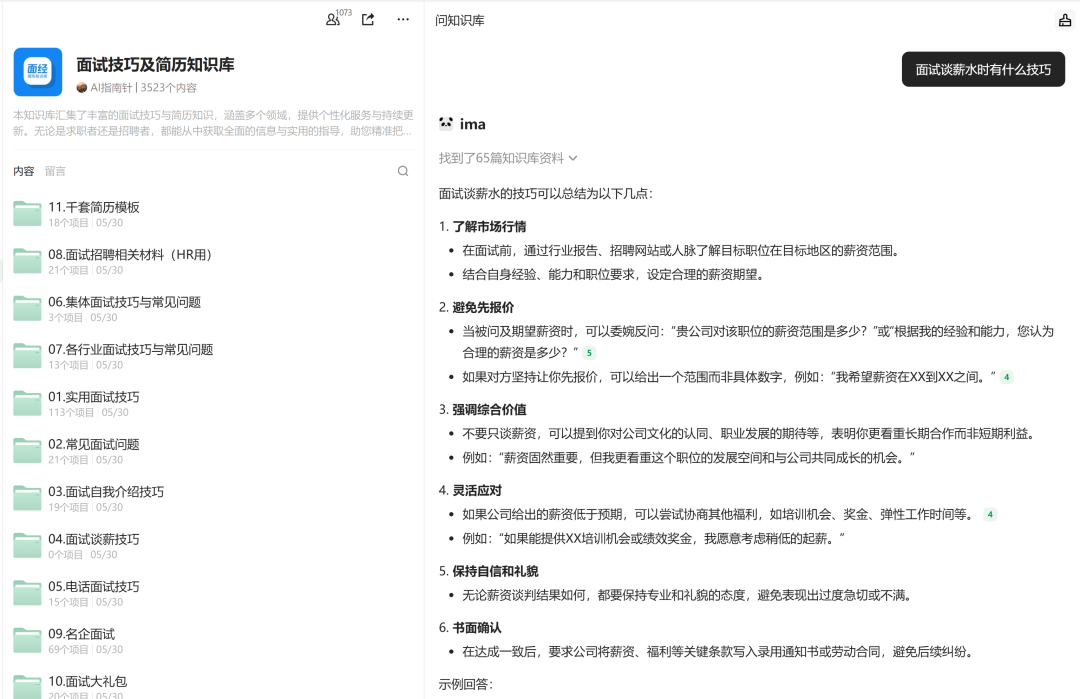 除了知识查询和搜索之外,ima也可以基于知识库的文档进行定制化创作。