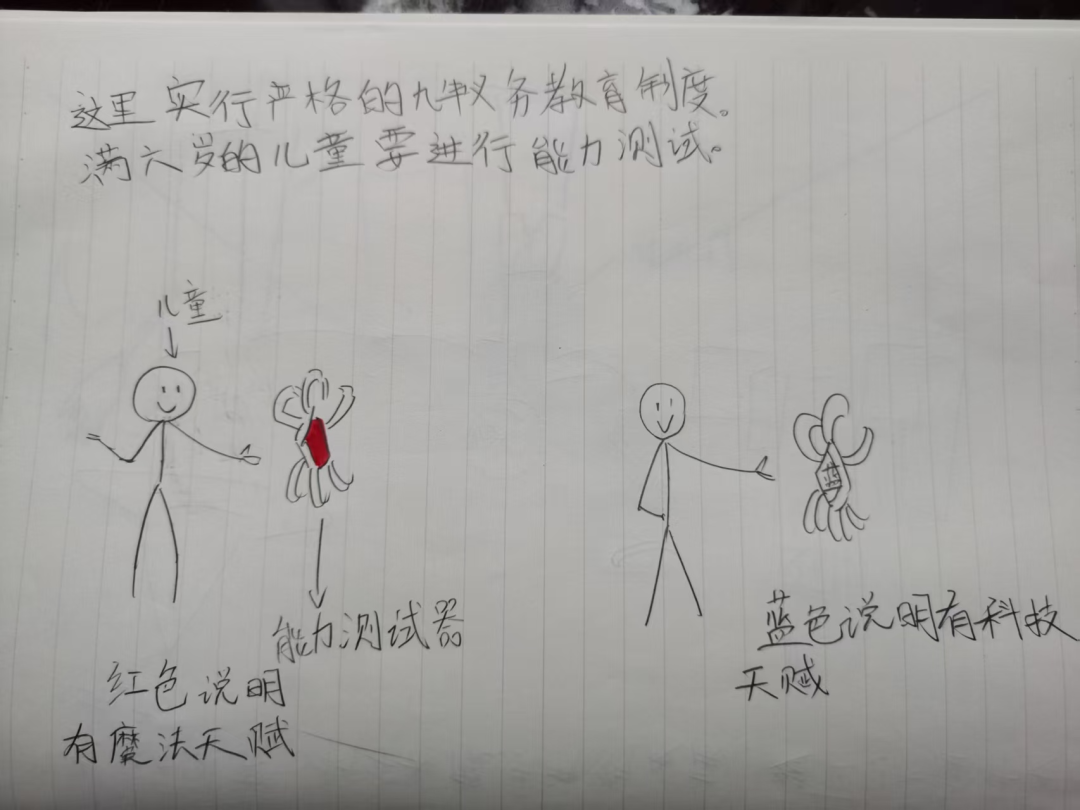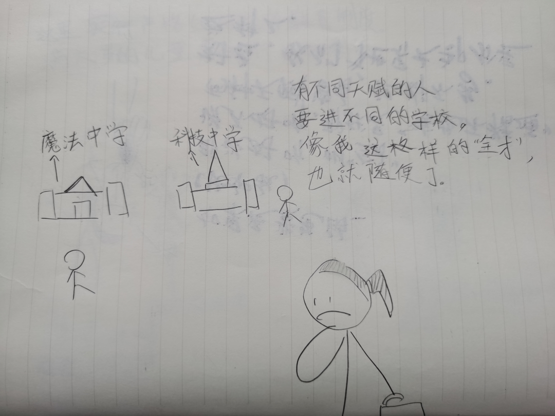 然后又找我讨论要设计的游戏情节,她要做一个校园类的魔法游戏,开始画草稿。