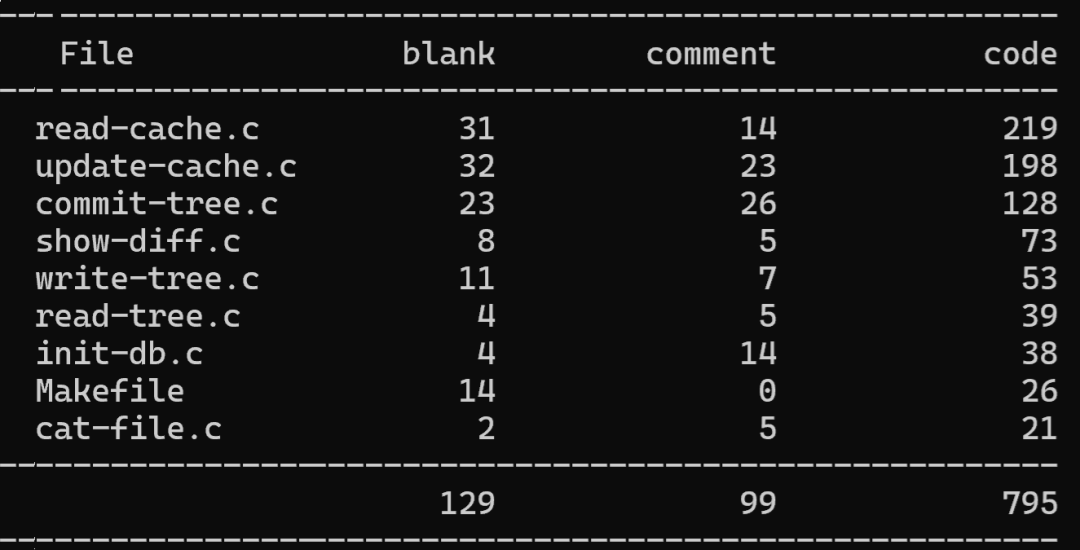 它就是Git 0.0.1,此时只有不到1000行的C代码: