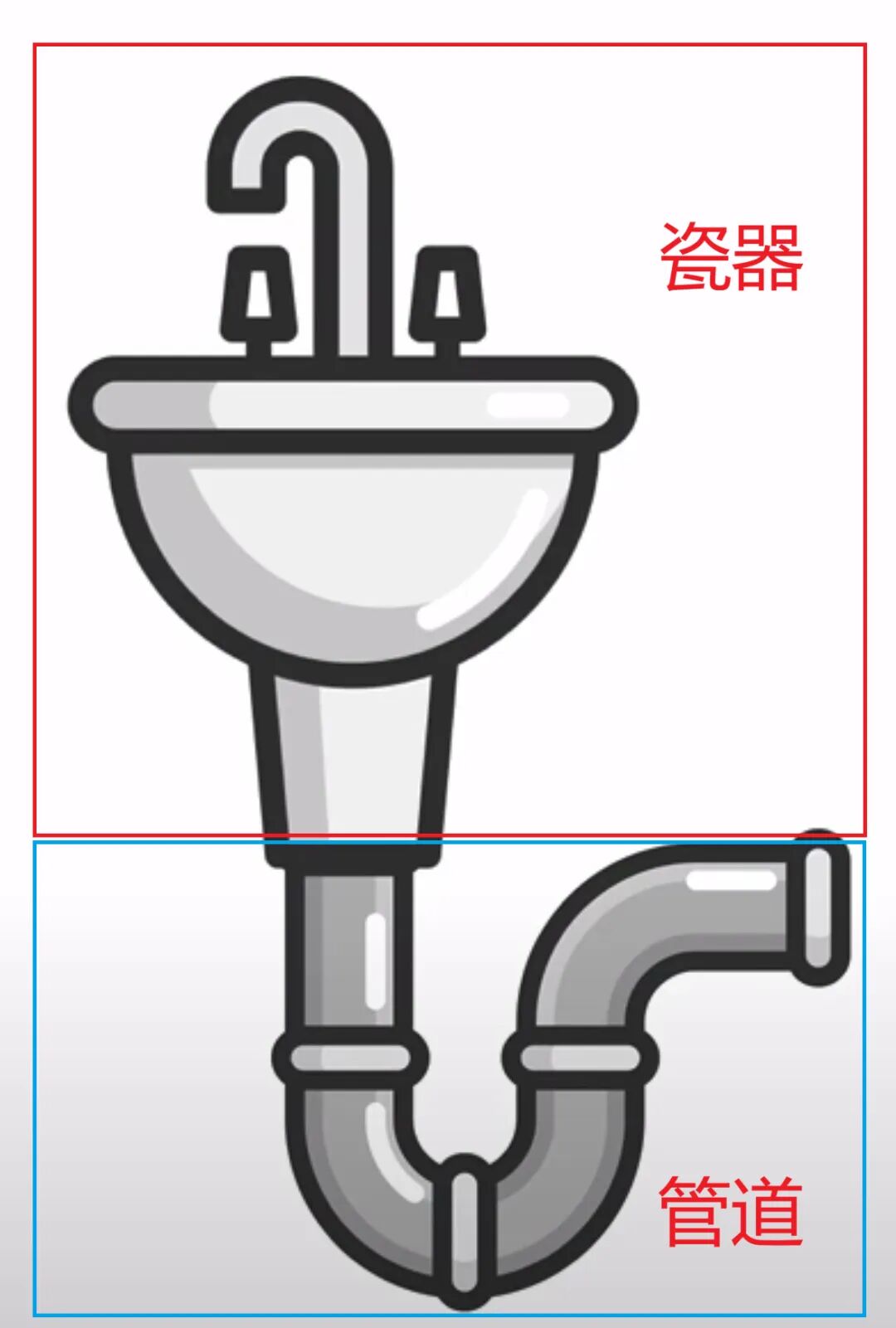 瓷器表示高级功能,友好的界面,例如如洗手池,用户直接使用它,不用看到管道里复杂的水流。