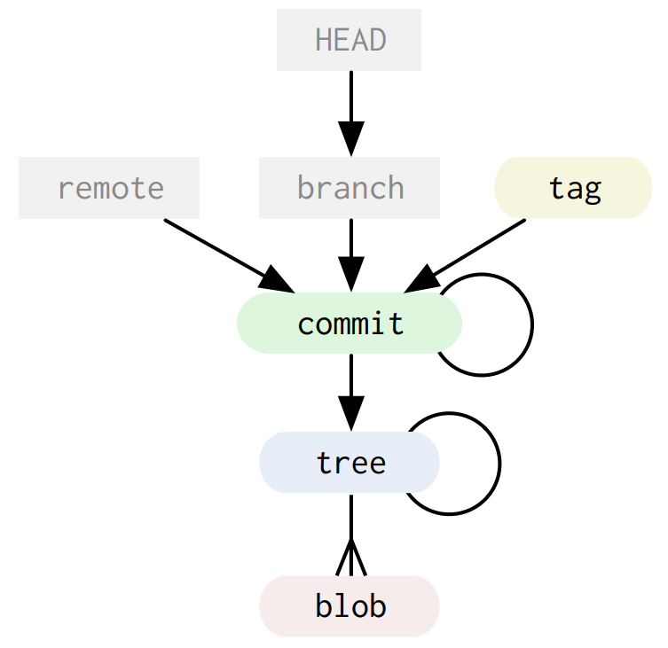 比如Git,核心的数据结构只有四种:Blob、Tree、Commit、Tag。
