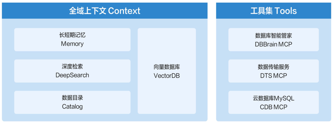 而工具集则基于MCP协议封装上层智能体所需的原子能力(如实例克隆、流量回放),为智能体提供“从规划到执行”的工具支撑。