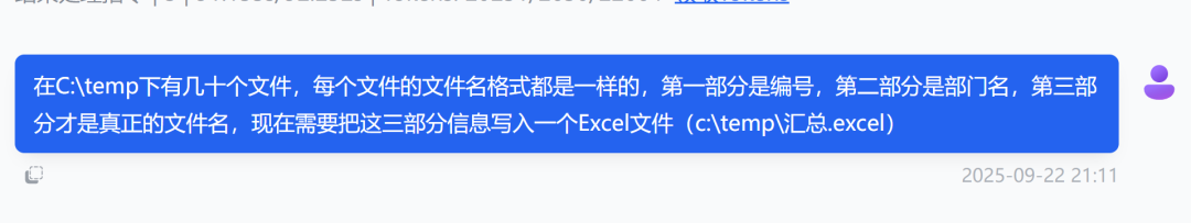 注意,我这个老板在这个指令中无意间写错了一个东西,应该是汇总.xlsx,而不是汇总.excel,正好看看“爱派”会怎么办。
