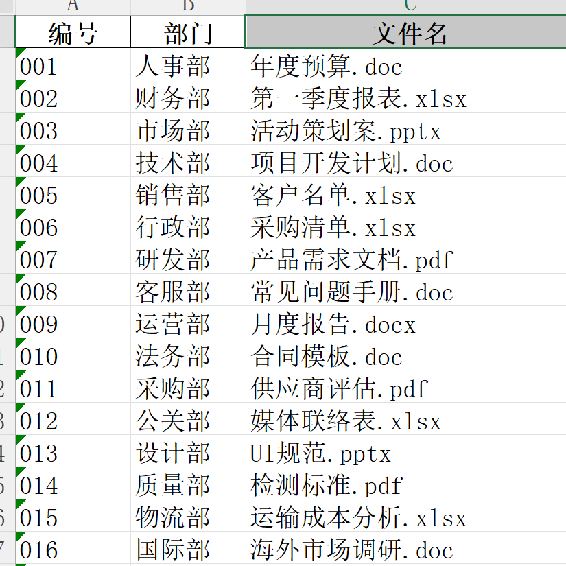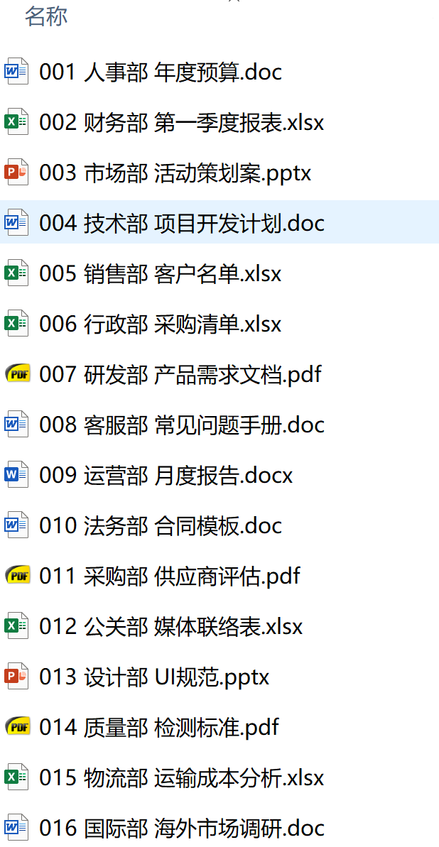 文件名是有特定格式的:第一部分是编号,第二部分是部门名,第三部分才是真正的文件名,中间用空格分开。