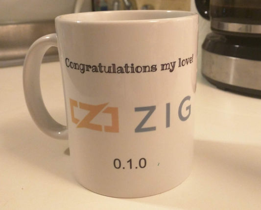 Zig很快推出了0.1.0版,安德鲁还收到了女朋友给他买的杯子作为庆祝。