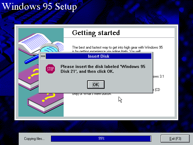 可能有人用软盘安装过Windows 95吧,按照屏幕提示,把一张张3.5寸软盘插入软驱,整个过程需要换盘十几次甚至二十几次!