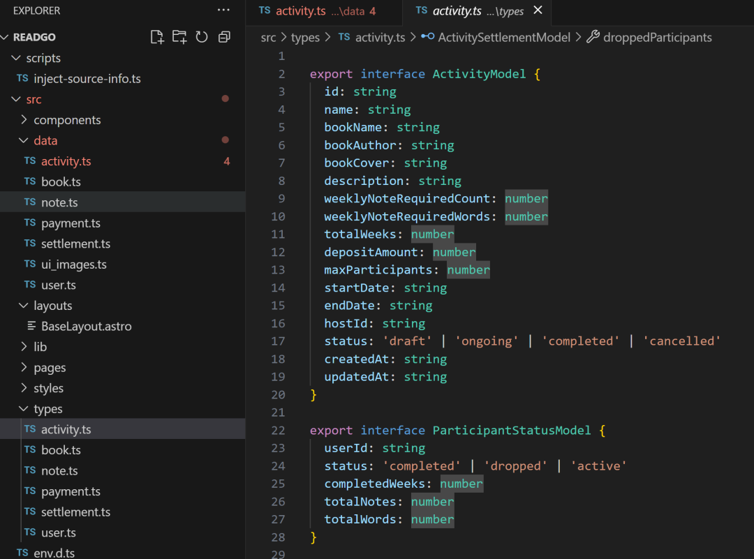 赶紧用VS Code打开看一下,可以看到,各种数据类型user,book,activity一应俱全,各种mock数据也自动生成。