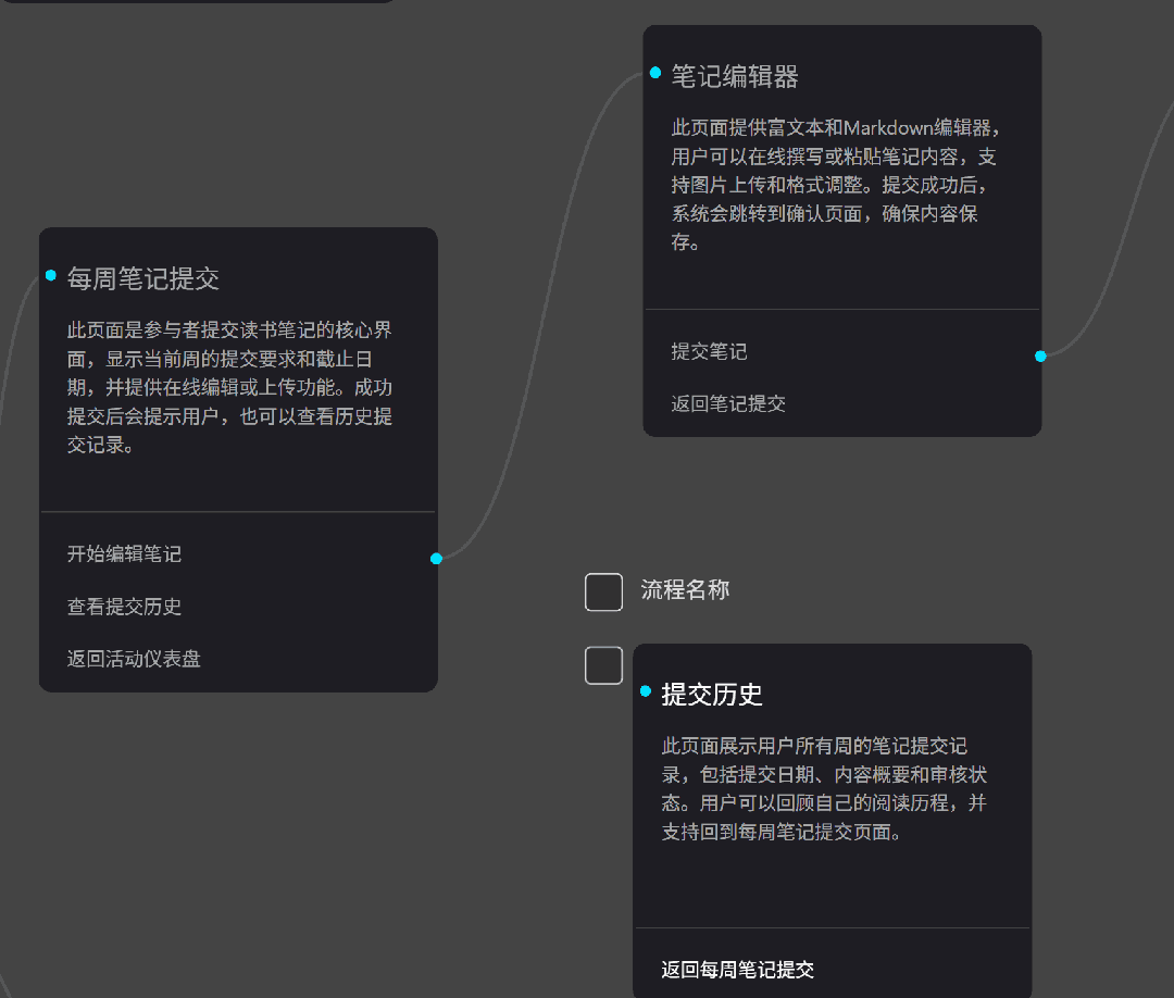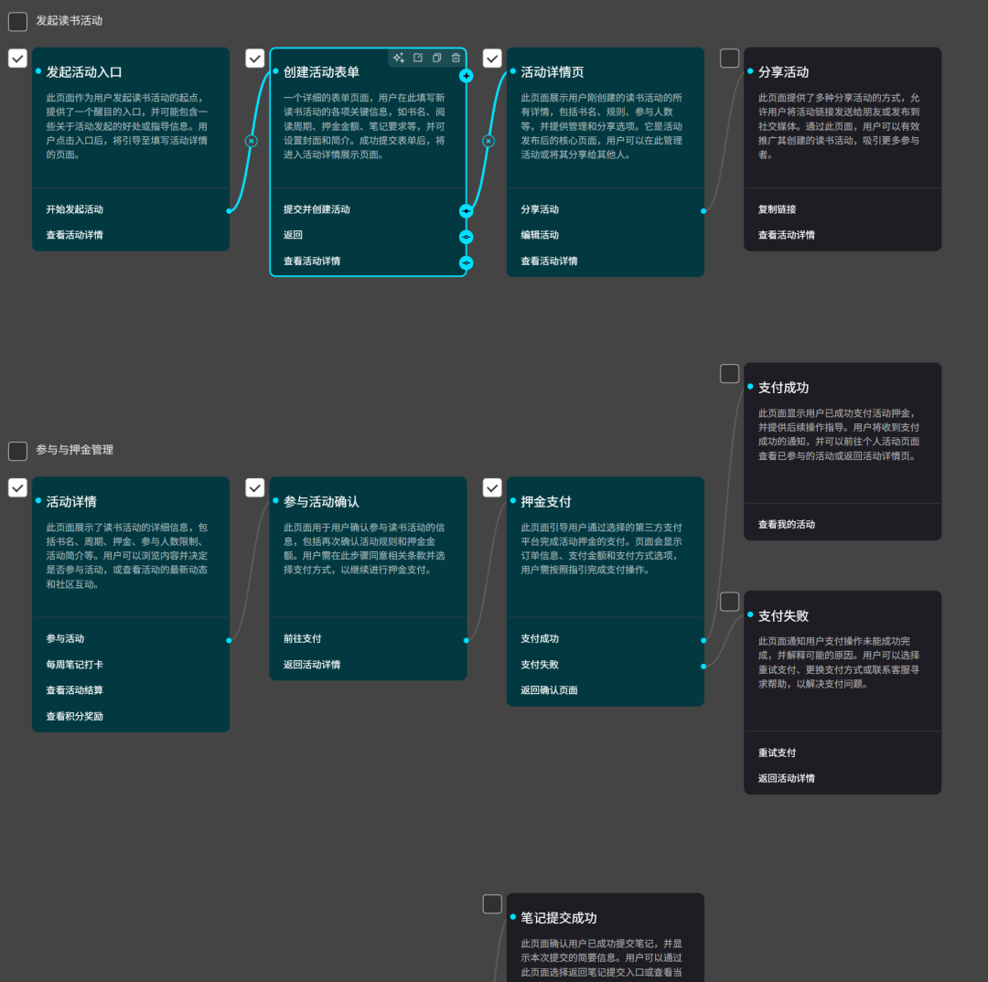 让我吃惊的是,它很快就给我生成了完整而漂亮的流程图,这流程把页面都串了起来。
