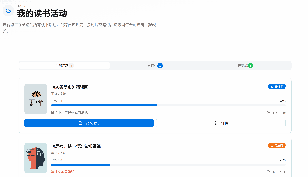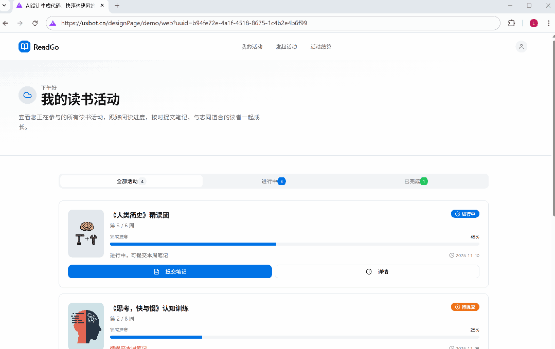 这是查看正在进行的读书活动,并且编辑读书笔记: