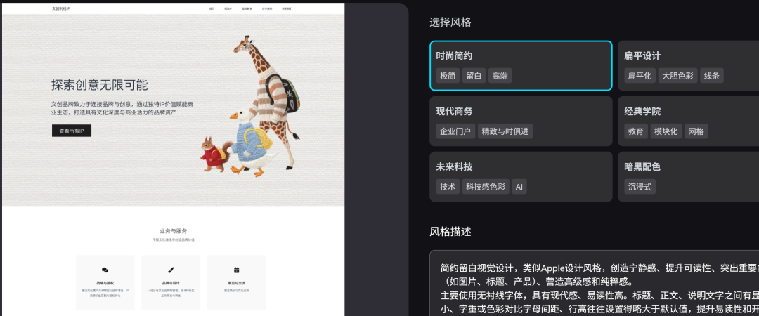 而市面上其他的工具,还得靠一大段提示词去“哄”,而且只能一页页地慢慢生成,根本做不到把所有页面串起来,形成一个真正连贯的设计。生成的效果一看就是套用模版来的,想改点东西也改不了,自主性太差。