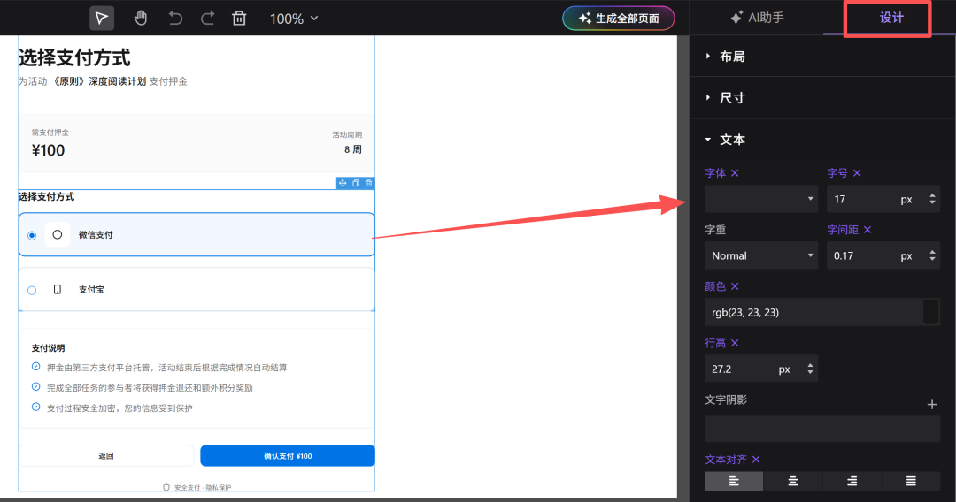 如果对自动生成的界面不满意,可以使用UXBot内置的专业界面设计工具进行修改: