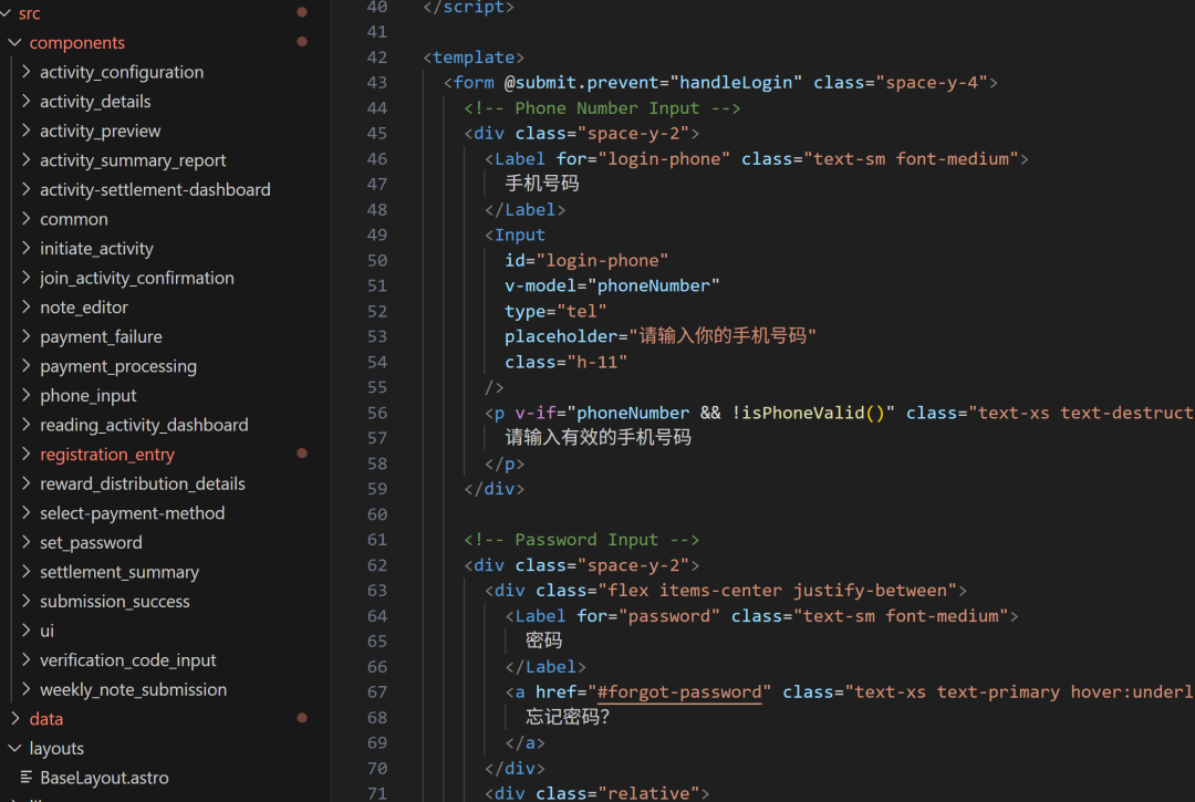 细心的同学可能从上面的“导出”截图中看到Vue.js了,没错,UXBot实现了“所见即所得”,你看到的界面原型,立刻变成了前端代码: