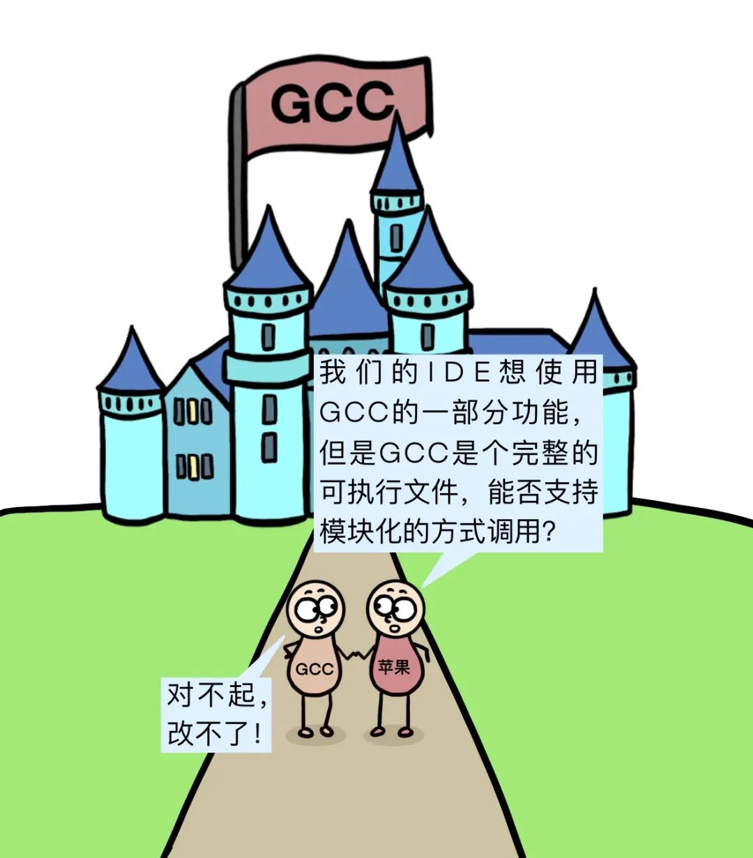 GCC还是个“单体应用”,很难嵌入到其他应用程序当中。