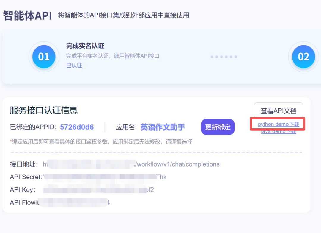注意,在API那里有个python/java的demo,可以下载下来,作为Web系统调用API的模版。