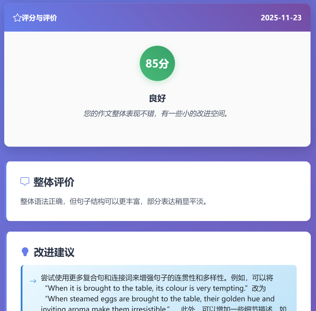 AI可以对作文进行评分,给出总体评价和改进意见。