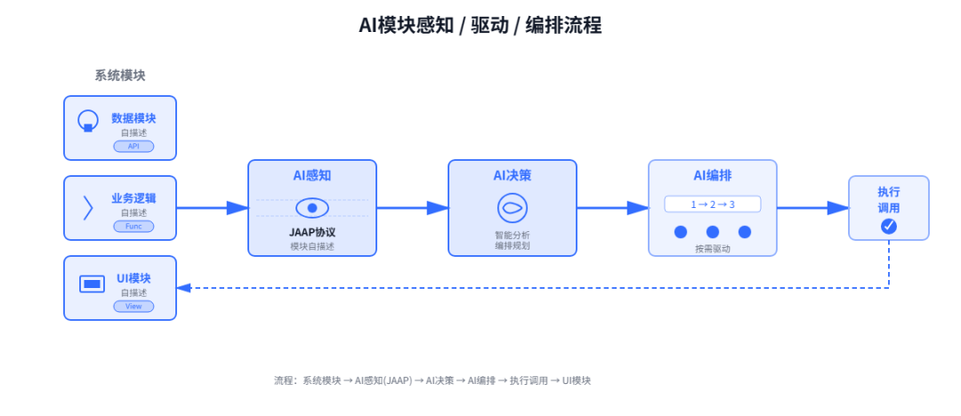 这种自描述模块不但适用于后端业务逻辑,也适用于前端UI,这意味着AI不仅能调用后端功能,还能理解和操作前端界面,这为AI驱动全栈系统奠定了基础。