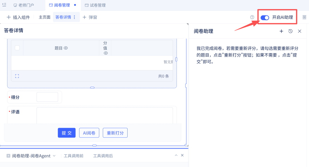 但是有了JitAI,在设计评卷系统的时候,可以给这个界面添加一个AI助理:
