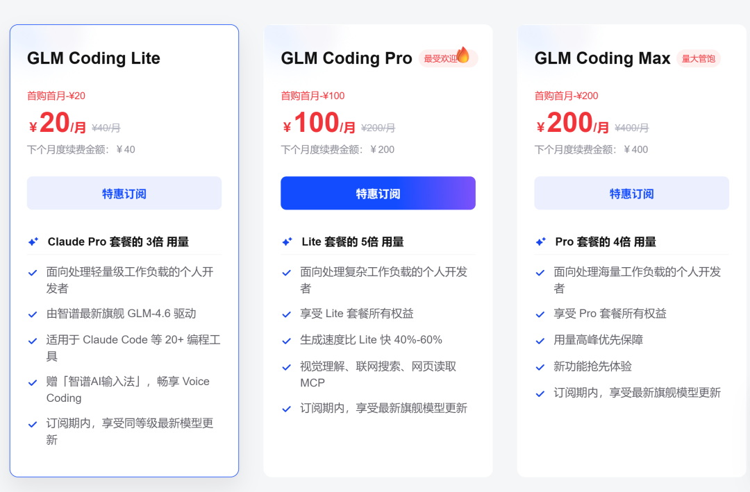 我去官网看了下,现在智谱正在进行跨年特惠限时促销,Coding Plan非常诱人,目前首月最低仅需20元!有邀请券还可享9折优惠,拥有 Claude Code 三倍用量!