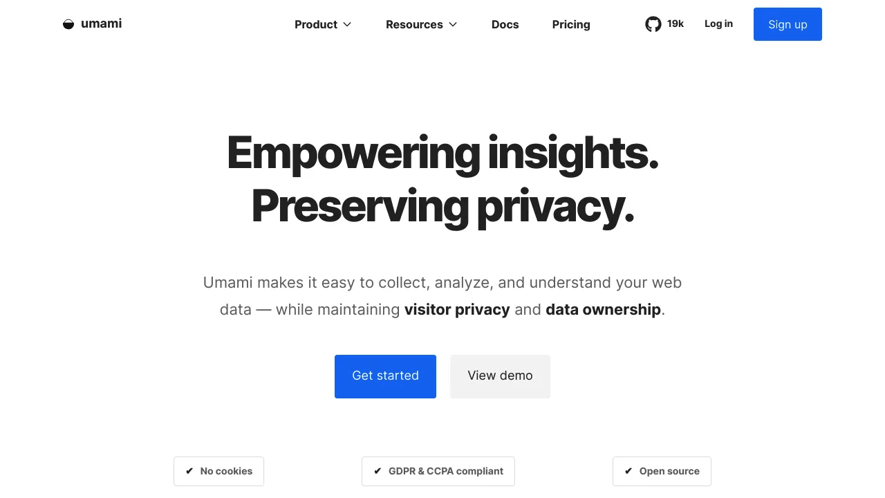 隐私优先的方法:Umami 完全符合《通用数据保护条例》(GDPR)、《加州消费者隐私法案》(CCPA)和《隐私与电子通信条例》(PECR),且不会影响其功能。