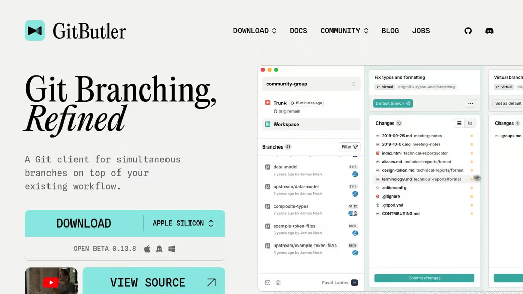 GitButler 是一款能让用户同时在多个分支上工作的 Git 客户端,通过拖拽的方式快速将文件改动整理到不同的分支中。同时还能将它们应用到用户的工作目录中,实现灵活地跨分支操作。