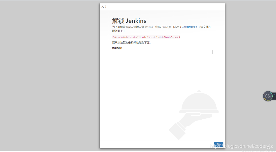 4.jenkins默认端口是8080,打开浏览器,地址栏输入localhost:8080