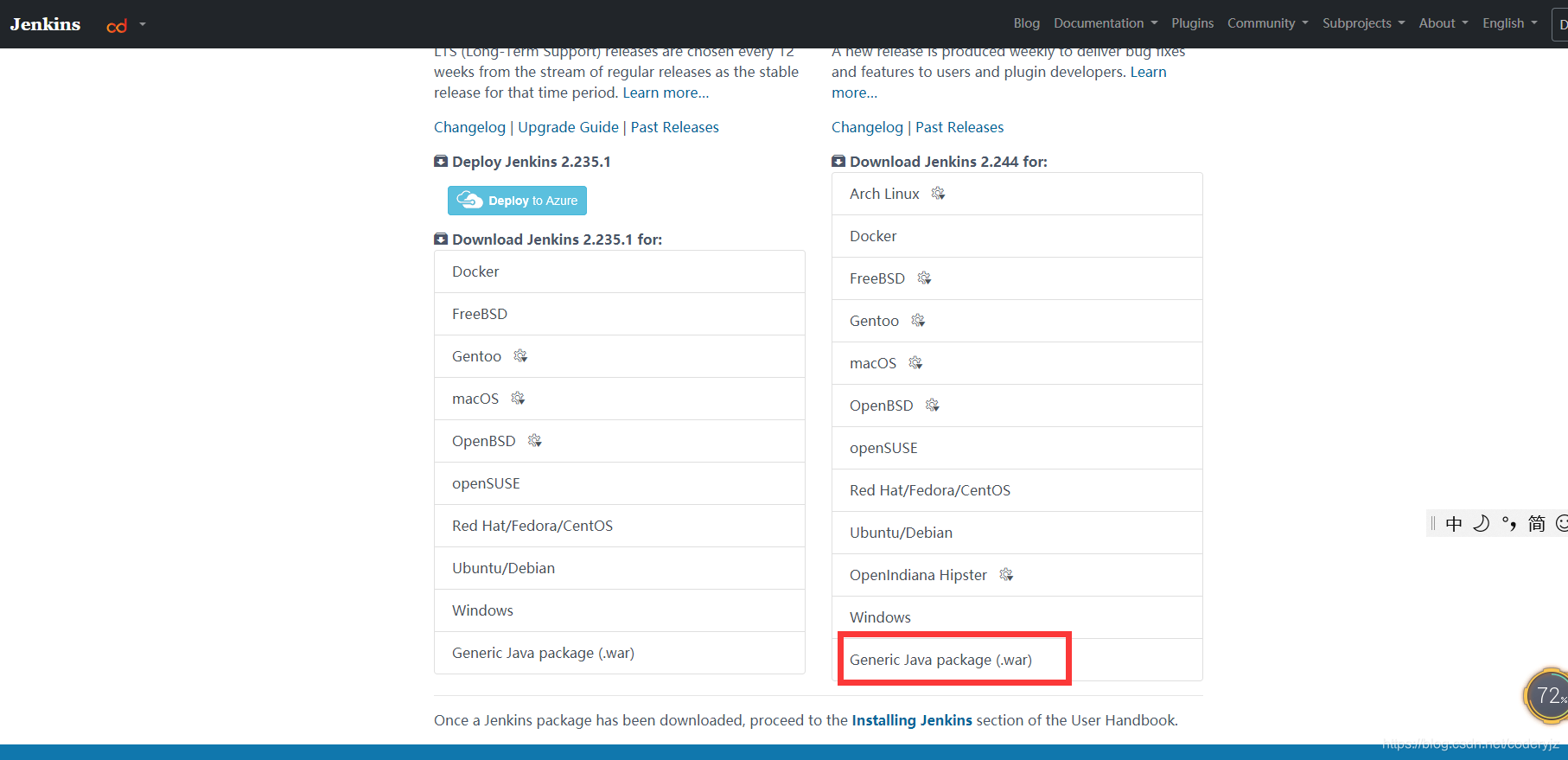 1.打开jenkins官网,选择war包的安装方式,msi的安装方式没尝试过 ,但是原理差不多