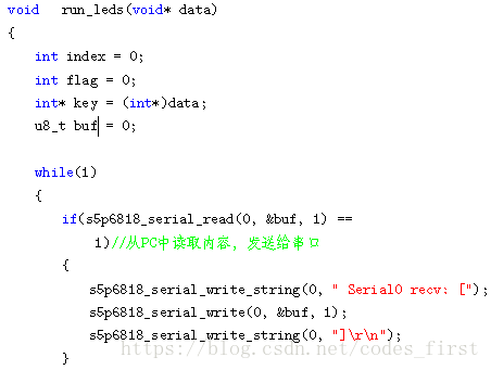 这一步的实现,仍然可以调用封装好的函数。serial_printf 函数执行输出一个字符串到指定串口的功能。它的第一个参数是串口号,第二个参数就是你要输出的字符串了。