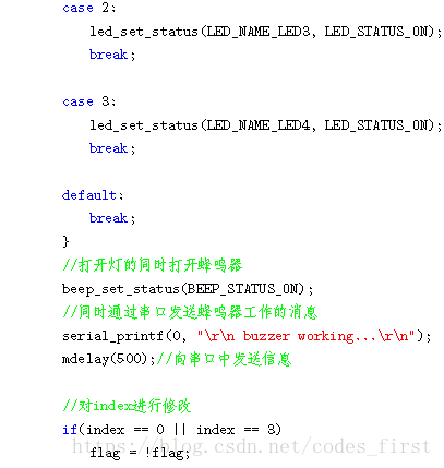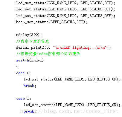 首先我们从main 函数开始,它有两个函数,do_system_initial 和led_initial。do_system_initial 函数首先会调用led_initial 函数初始化led,再通过tester_led 函数控制相应LED 的亮与灭。