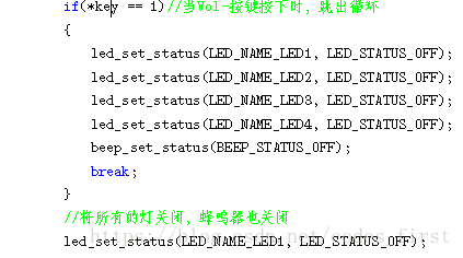 该实验实现了,按下VOL+,VOL-两个按键来控制LED 灯的亮灭。